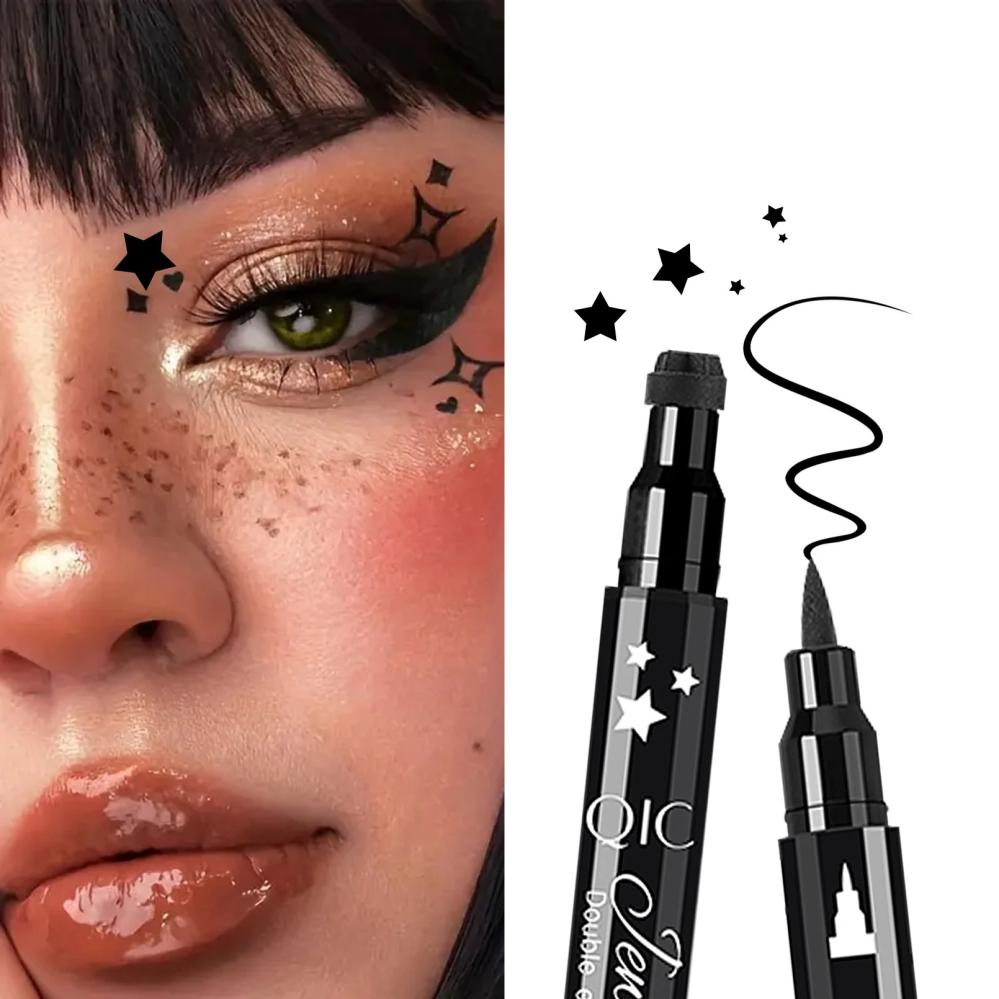 مجموعة أقلام تحديد العيون السائلة قطعة واحدة طوابع مزدوجة الطرف مع حبر أسود - تتضمن قلب وقمر وأشكال نجمة لمكياج العين وختم تحديد العيون